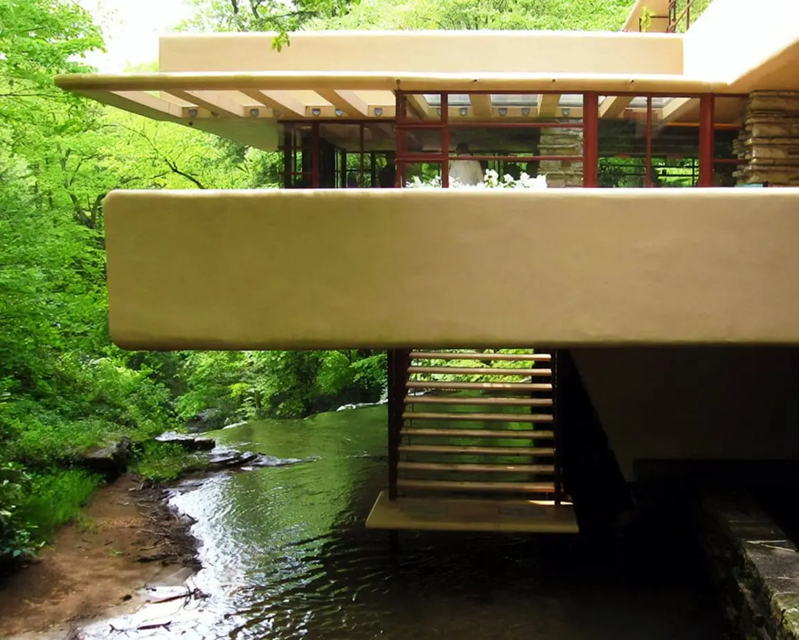 Right: Frank Lloyd Wright’s stair platform at Fallingwater, Bear Run, Pennsylvania.