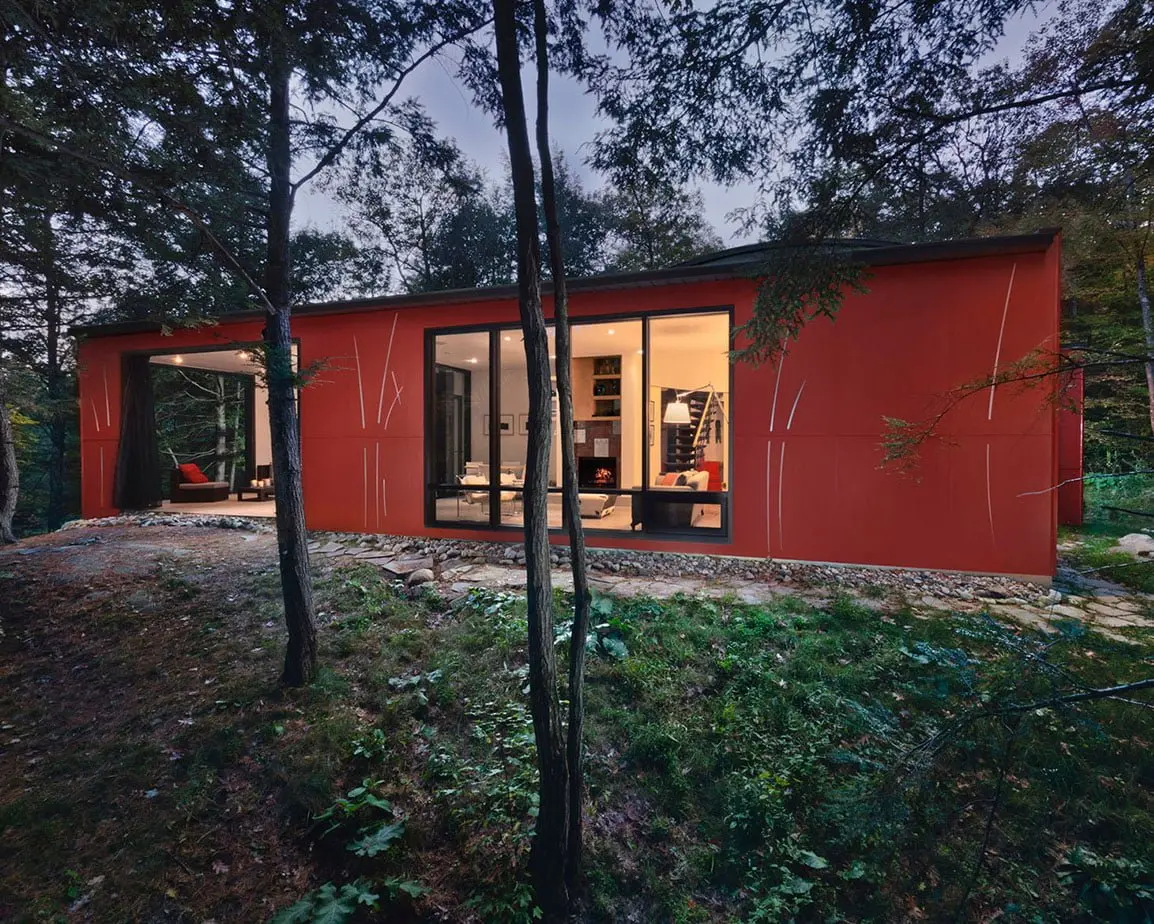 The name says it all: the heart of that home is not the gorgeous surrounding forest seen through the home’s many windows. The heart of the home is a “vocal” stream over which the house is cantilevered. The most sensual moment of that home is a small platform, a stair, that descends from the indoors and goes “nowhere”; simply hovering above the stream.